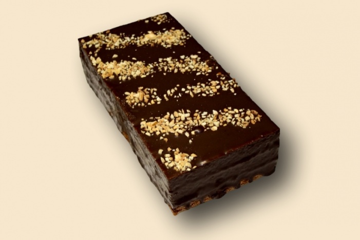 Tradycyjny piernik przekładany marmoladą i polany ciemną czekoladą.