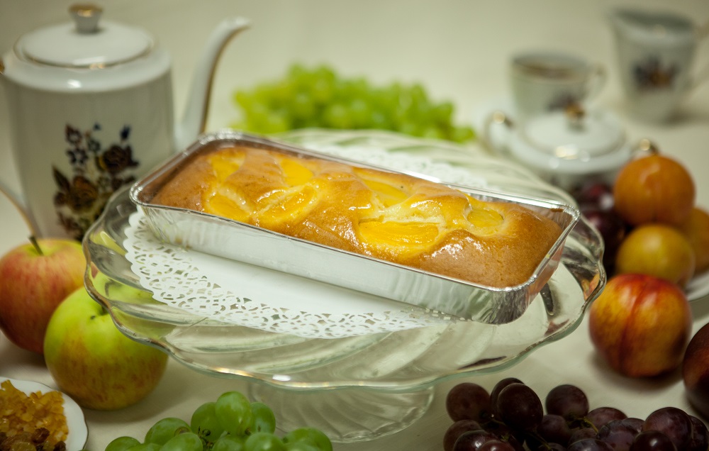 Bardzo denikatne ciasto biszkoptowo-tłuszczowe z jogurtem, zdobione brzoskwiniami lub owocami sezonowymi.