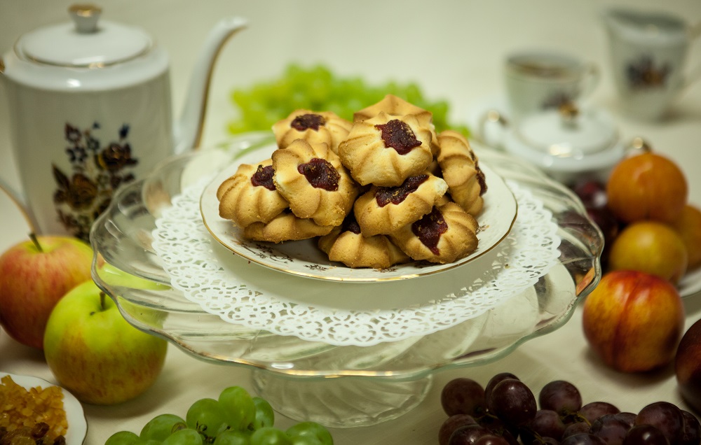 Ciastka kruche-maślane z marmoladą wieloowocową.