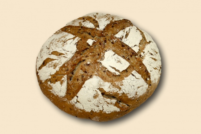 Pieczywo pszenne-żytnie na naturalnym zakwasie z siemieniem lnianym.