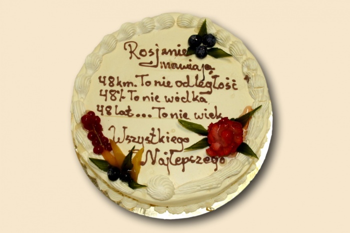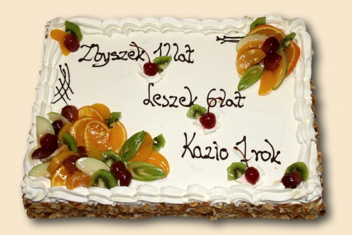 Wykonujemy torty na zamówienie. Od najprostszych do najbardziej wyszukanych życzeń. Możemy wykonać tort o prawie dowolnym kształcie i z dowolnym napisem, a także różnych smakach. Poniżej przedstawiamy przykładowe torty przez nas wykonane. Prosimy pamiętać, że każdy tort jest wykonywany ręcznie i może się nieznacznie różnić względem tych przedstawionych. Tort można zamówić telefonicznie, mailowo lub osobiście w jednym z naszych sklepów firmowych - z chęcią doradzimy i pomożemy w wyborze.